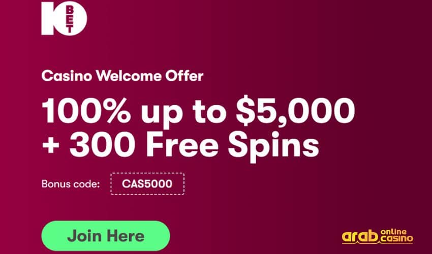 Enjoy the special welcome bonus only for Arab Online Casino players – a 100% bonus of up to $5000 and 300 free spins. Click Play Now to grab this offer!